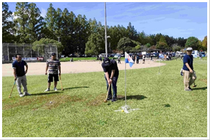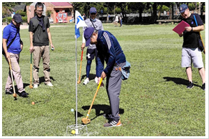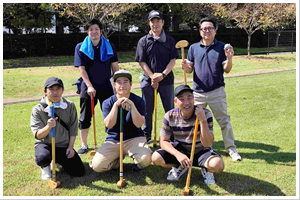 競技内容は、4コートを2周回り、1チーム6人で編成したスコア(打数)の合計が少ないチームにより順位が決まります。