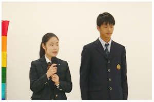 - 高校生平和大使のお二人からは高校生平和大使となったきっかけや、これまでの活動や成果、苦労されたお話などを報告していただきました。
